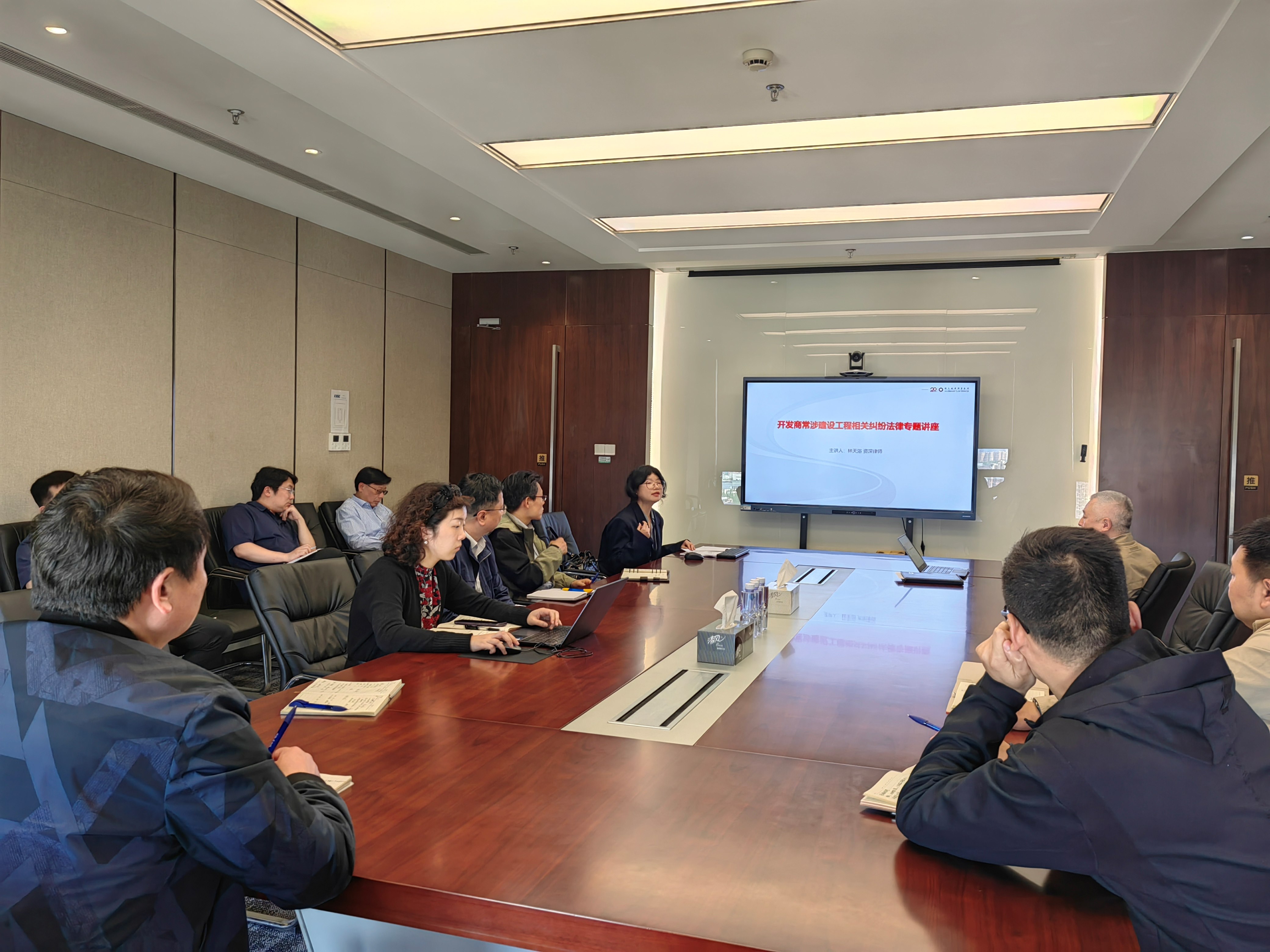 培訓由公司常年法律顧問上海錦天城律師事務所林天浴律師主講。林律師詳細介紹了建設工程中常見的糾紛類型,包括合同效力、合同履行、工程價款、工程價優先受償權等問題,并探討了建設工程糾紛的特性以及對企業的不利影響。通過案例詳細分析開發商在建設過程中可能面臨的各類法律問題和糾紛情形,并提供了針對性的法律建議。